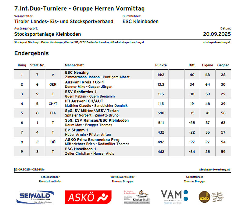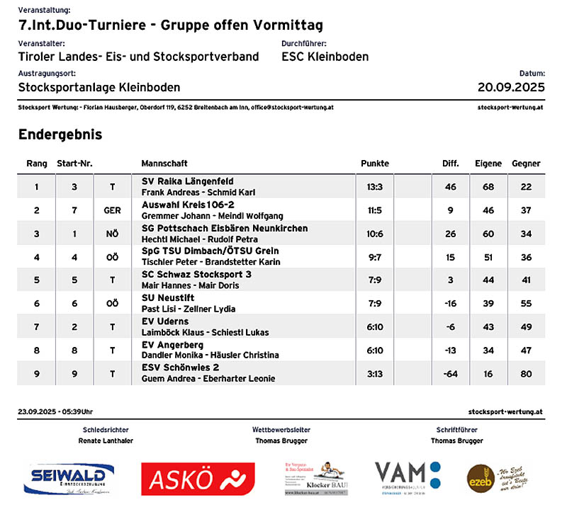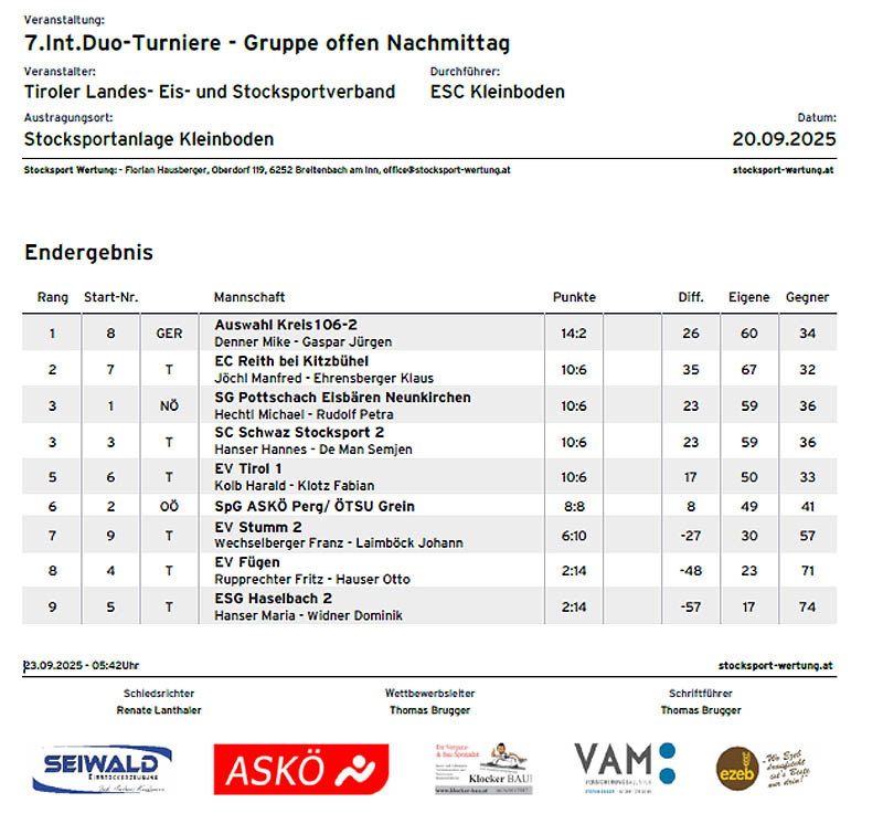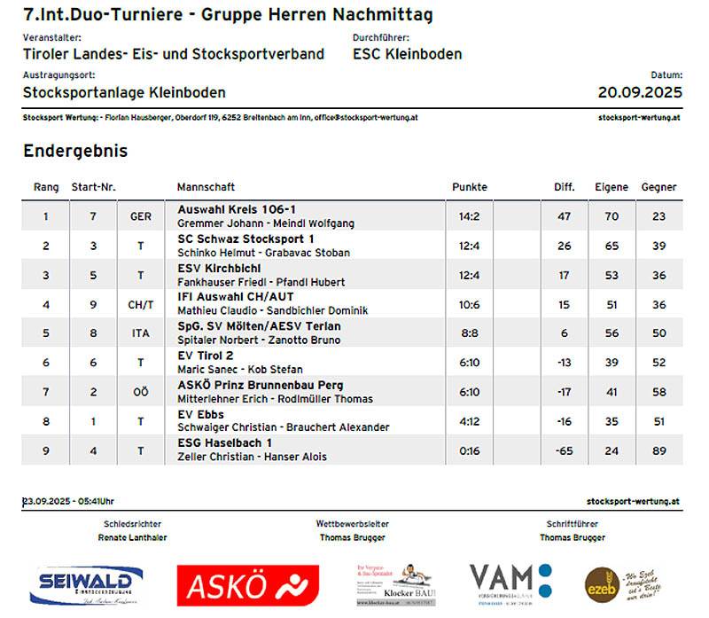 < Ergebnisse Herren > < Ergebnisse Damen > < Ergebnisse Senioren > < Ergebnisse Mixed > < Ergebnisse Jugend >