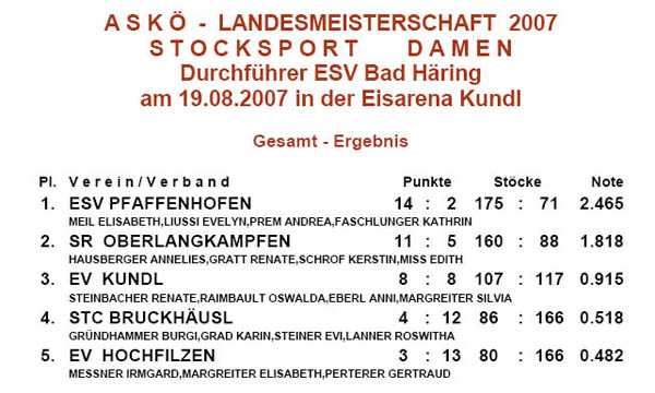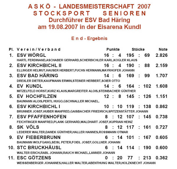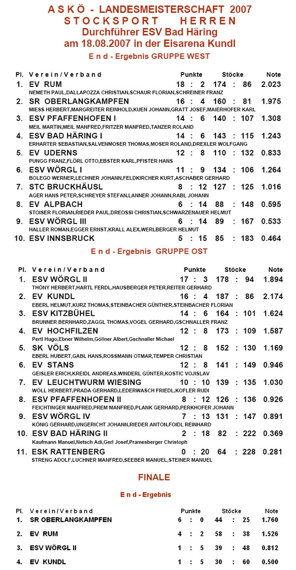 ASKÖ Landesmeisterschaft - Mannschaftsspiel Sommer 2007 vom 18./19. August 2007 in Kundl |
