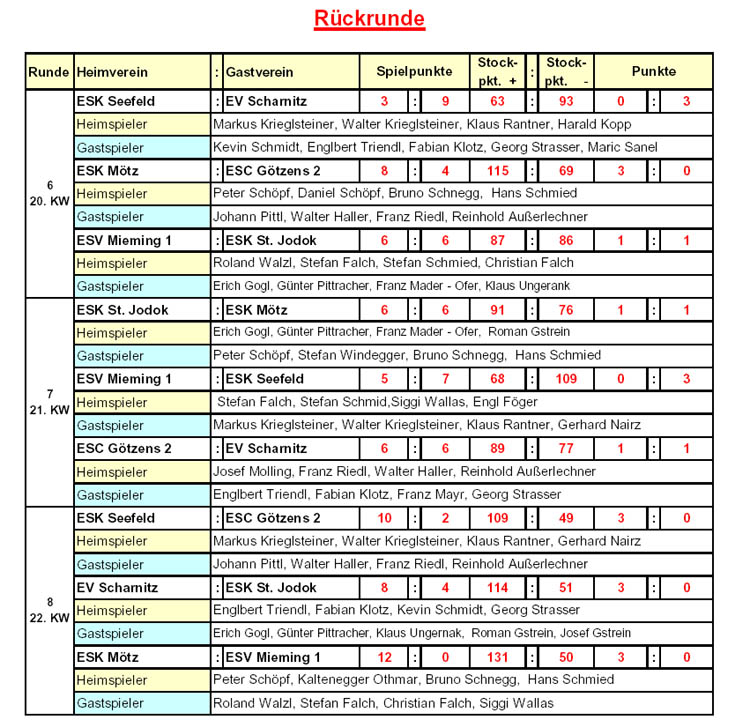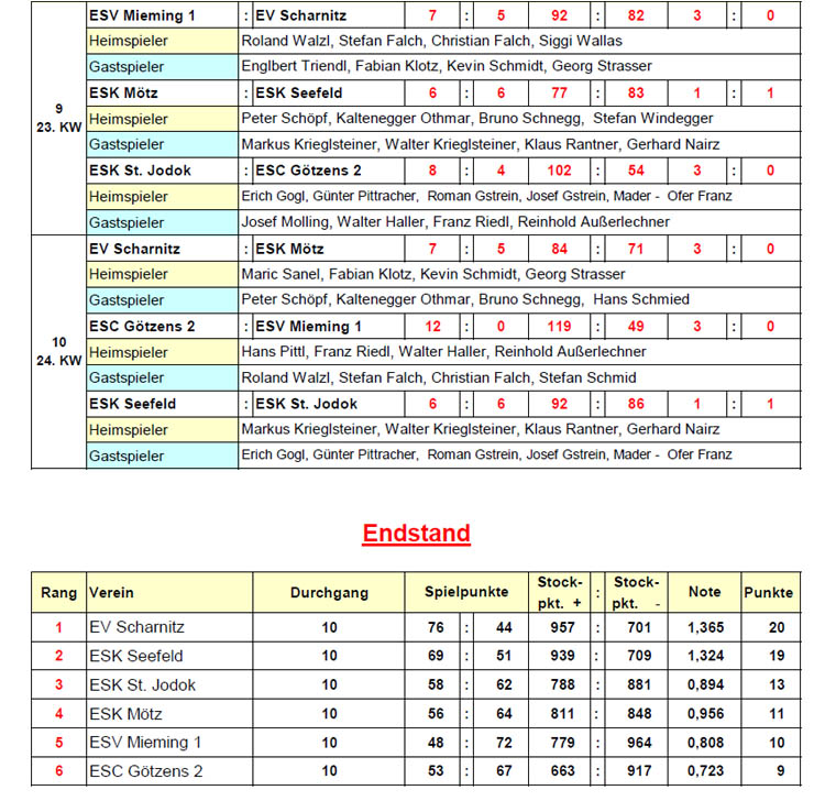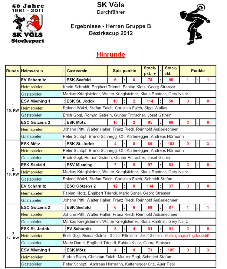 Das Abschlussturnier findet am 23. Juni 2012 in Völs statt. Wir bitten um eheste Meldung für das Abschlussturnier! |