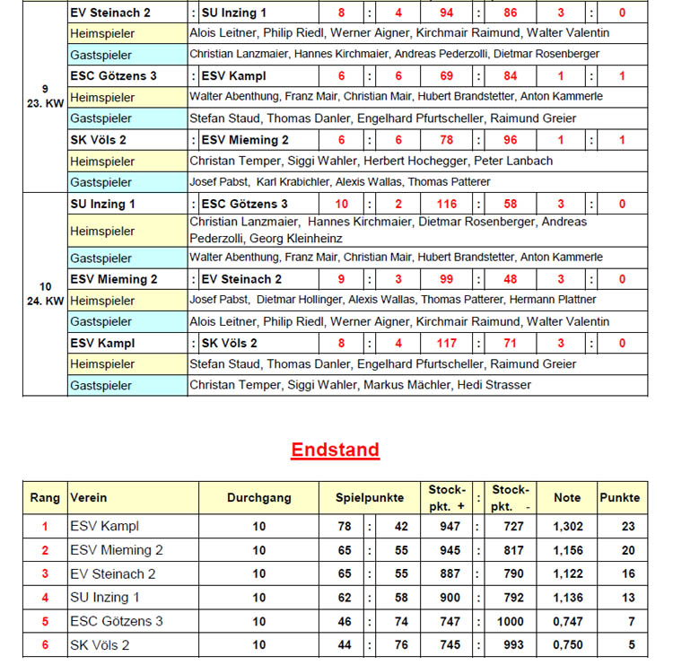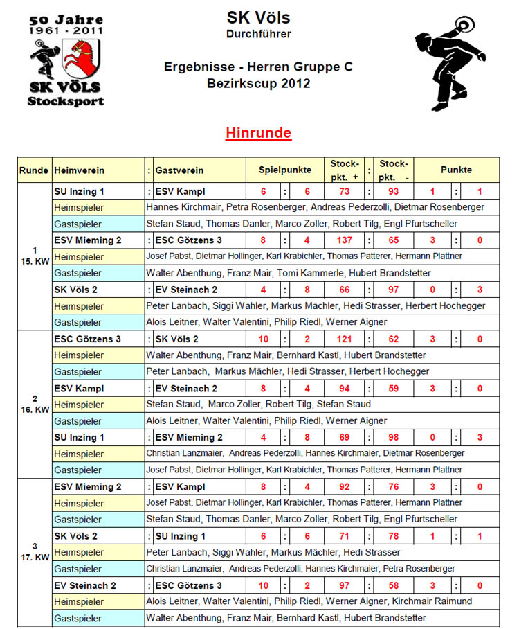 Das Abschlussturnier findet am 23. Juni 2012 in Völs statt. Wir bitten um eheste Meldung für das Abschlussturnier! |
