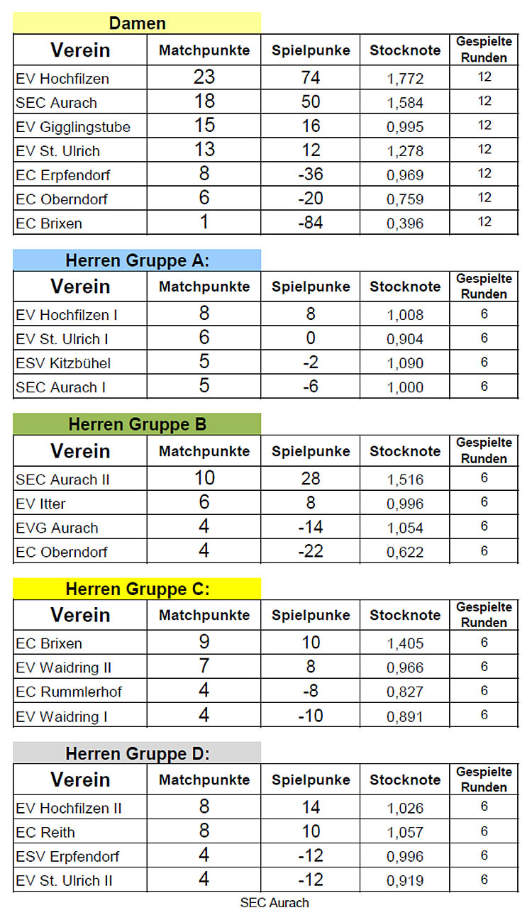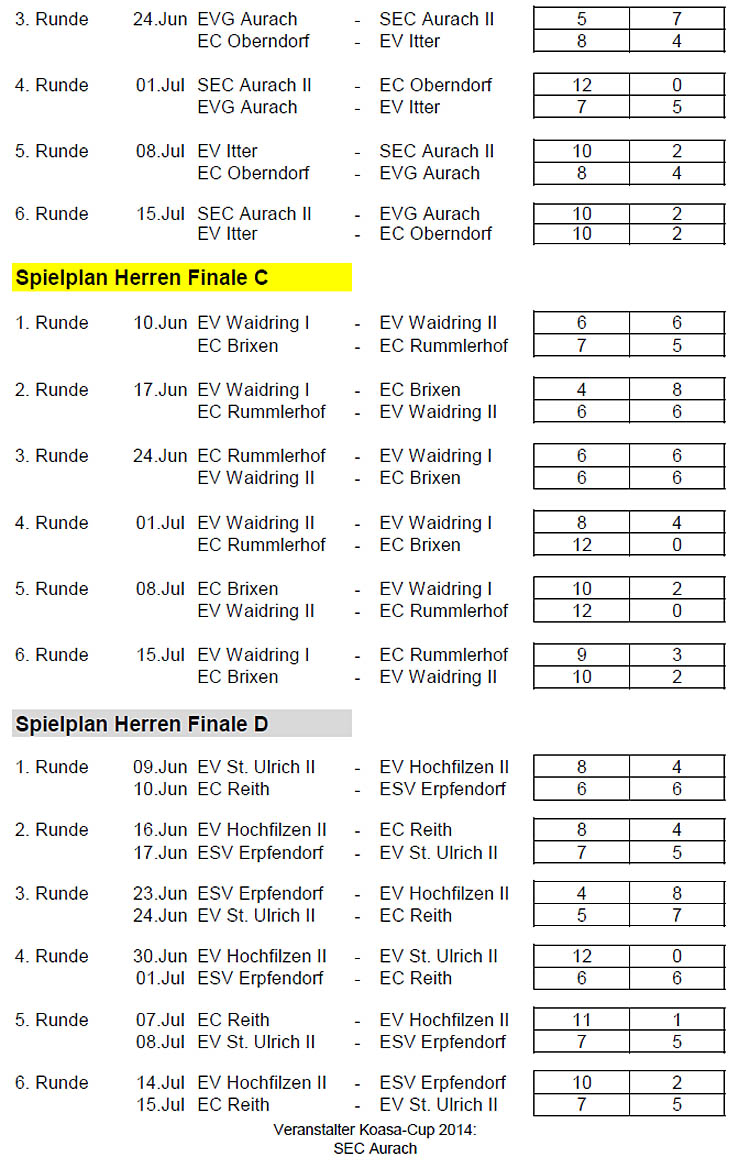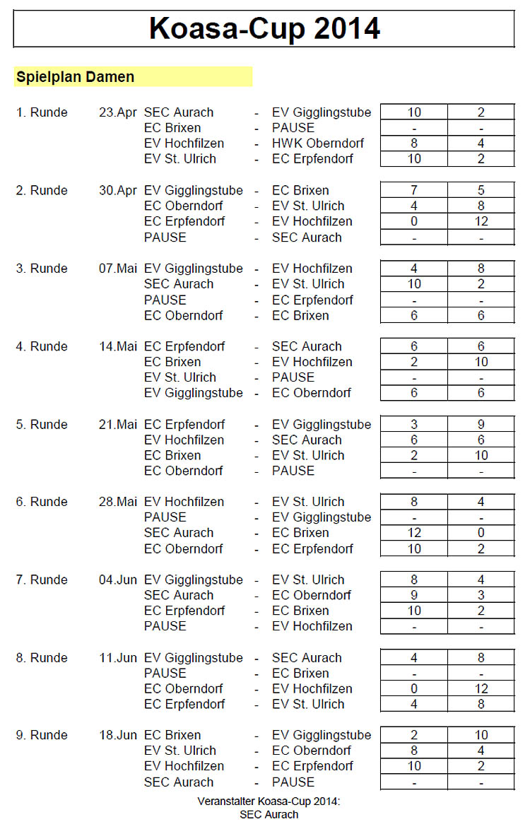 Ergebnisse Cupbewerbe