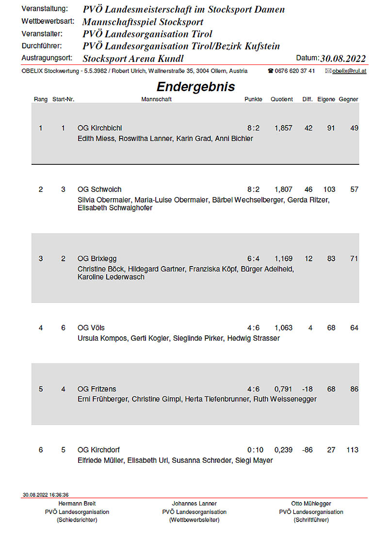 Ergebnis zum ausdrucken
