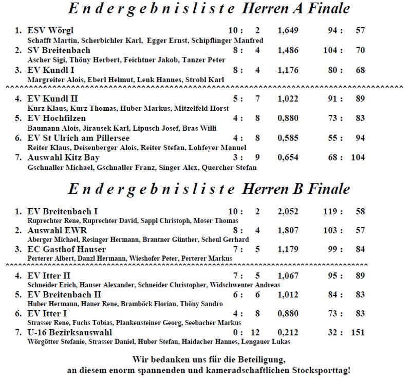 < Ergebnisse Herren > < Ergebnisse Damen > < Ergebnisse Senioren > < Ergebnisse Mixed > < Ergebnisse Jugend >