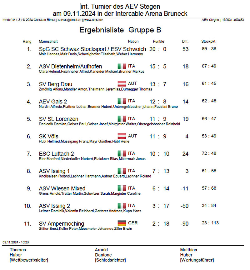 < Ergebnisse Herren > < Ergebnisse Damen > < Ergebnisse Senioren > < Ergebnisse Mixed > < Ergebnisse Jugend >