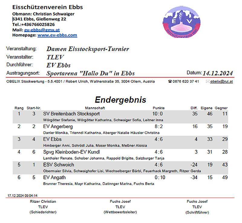 < Ergebnisse Herren > < Ergebnisse Damen > < Ergebnisse Senioren > < Ergebnisse Mixed > < Ergebnisse Jugend >