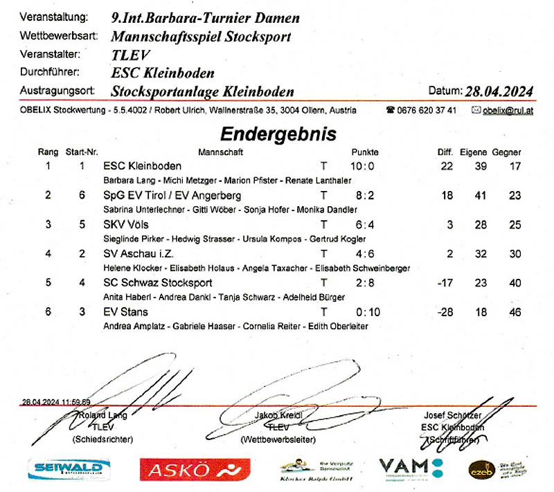 < Ergebnisse Herren > < Ergebnisse Damen > < Ergebnisse Senioren > < Ergebnisse Mixed > < Ergebnisse Jugend >