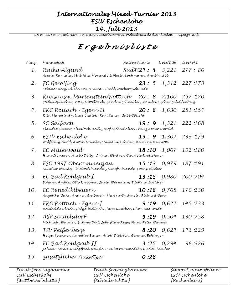 < Ergebnisse Herren > < Ergebnisse Damen > < Ergebnisse Senioren > < Ergebnisse Mixed > < Ergebnisse Jugend >
