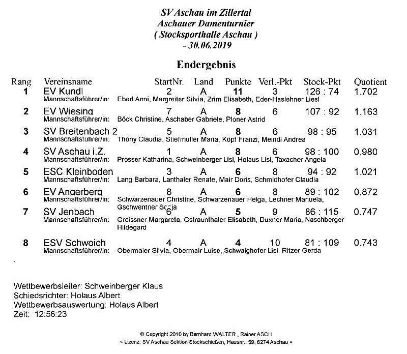 SV ASCHAU im Zillertal Sektion Eisschiessen ZVR Nr.: 912358151 Klaus Schweinberger Dorfstrasse 13 A 6274 Aschau Tel: 0664 4123025 E-Mail : Klaus Schweinberger |