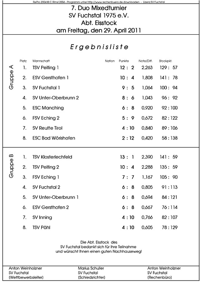 < Ergebnisse Herren > < Ergebnisse Damen > < Ergebnisse Senioren > < Ergebnisse Mixed > < Ergebnisse Jugend >