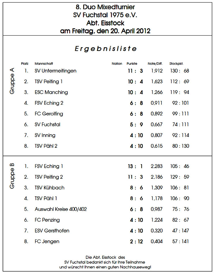 < Ergebnisse Herren > < Ergebnisse Damen > < Ergebnisse Senioren > < Ergebnisse Mixed > < Ergebnisse Jugend >