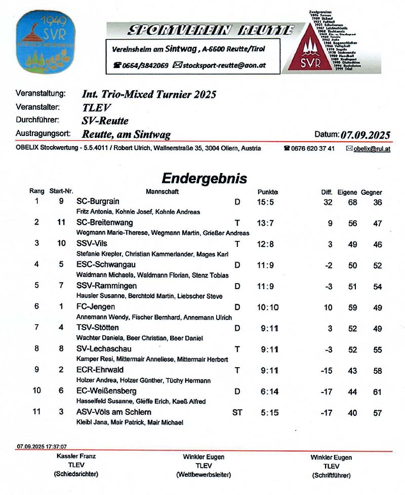 1.Rang: SC Burgrain (D) Fritz Antonia, Kohnle Josef, Kohnle Andreas |