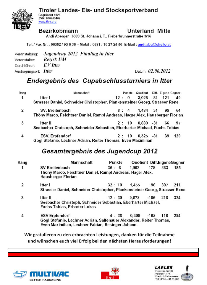 2. Rang: SV Breitenbach vl. Alice Mudrynetz, das EV Itter 1 Team UM Bezirkobmann Andi Aberger und Strasser Wolfgang |