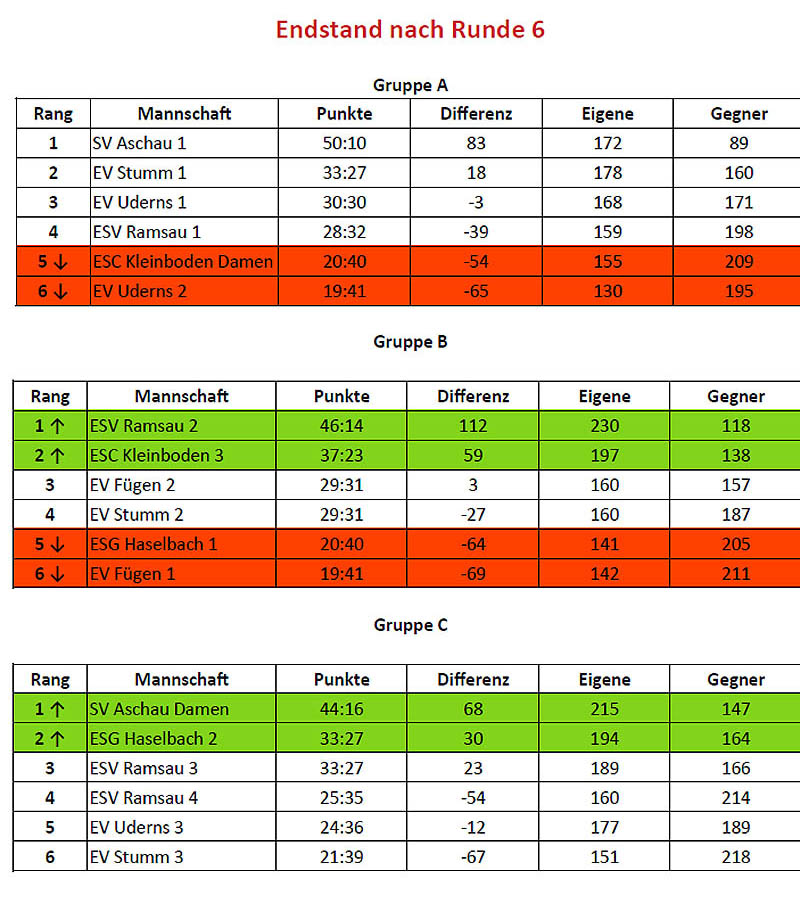 Ergebnisse Cupbewerbe
