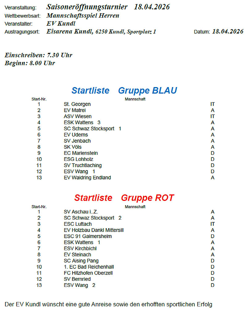 Startliste zum ausdrucken