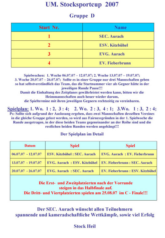 Ausdruck in PDF - Gruppe D (Vorrunden Gruppierung, Spielplan, Wertungsblatt, Halbfinal Auslosung)