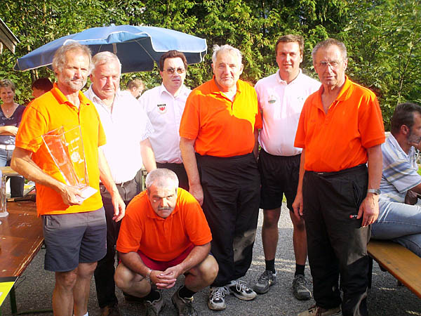 vl. Michael Gschnaller, Bgm. Rudi Mitterer, knieend Willi Ebner, Veranstaltungsl. Andi Aberger, Otto Zeiner, SEC. Aurach Obm. Peter Obernauer, Hugo Pertl und nicht mit im Bild Albert Göllner