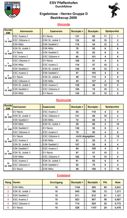 < Herren A > < Herren B > < Herren C > < Herren D > < Damen > < Zielbewerbe > < Abschlussturnier >
