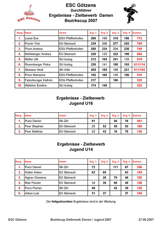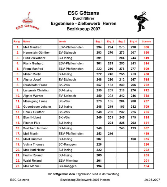 Endergebnis Bezirkscup Zielbewerb 2007 |