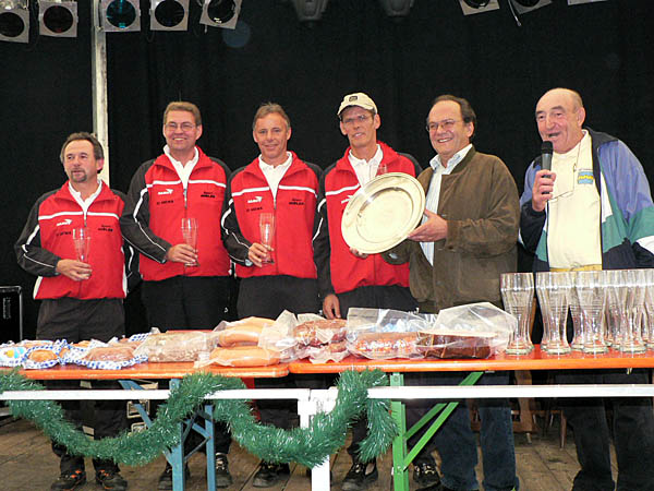 1. Rang: ESC Manching von links: Lorenz Mayer, Rudolf Zwyrtek, Helmut Froschmeier, Guido Bartling, Bürgermeister Hans Prechter, stellv. Abteilungsleiter Bruno Rubey |