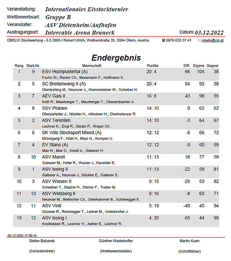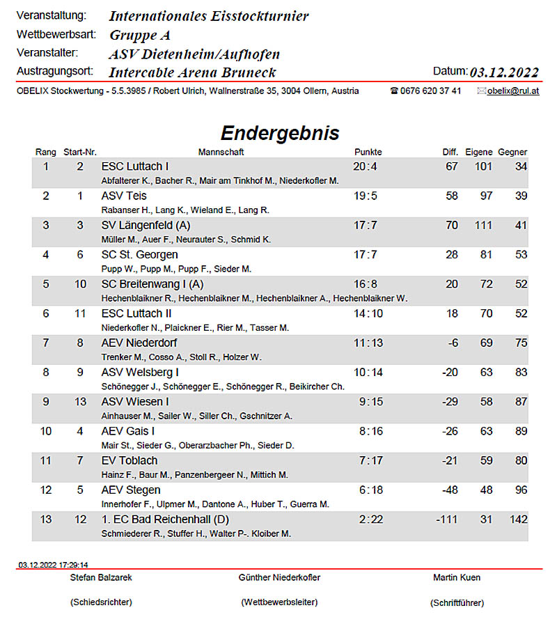 1. Rang: ESV Hochpustertal (A) Fuchs St., Rauter Ch., Moosmann F., Hoffmann S. |
