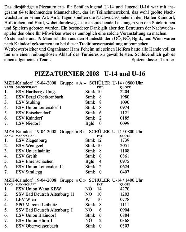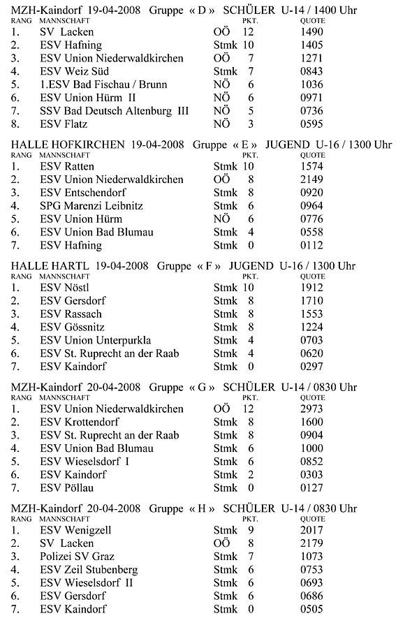![]() für Schüler / Jugend U14 und Jugend U16 vom Samstag, den 19. April 2008 und vom Sonntag, den 20. April 2008 |