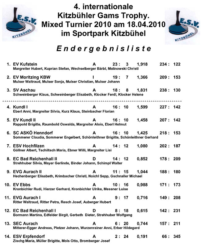 < Ergebnisse Herren > < Ergebnisse Damen > < Ergebnisse Senioren > < Ergebnisse Mixed > < Ergebnisse Jugend >