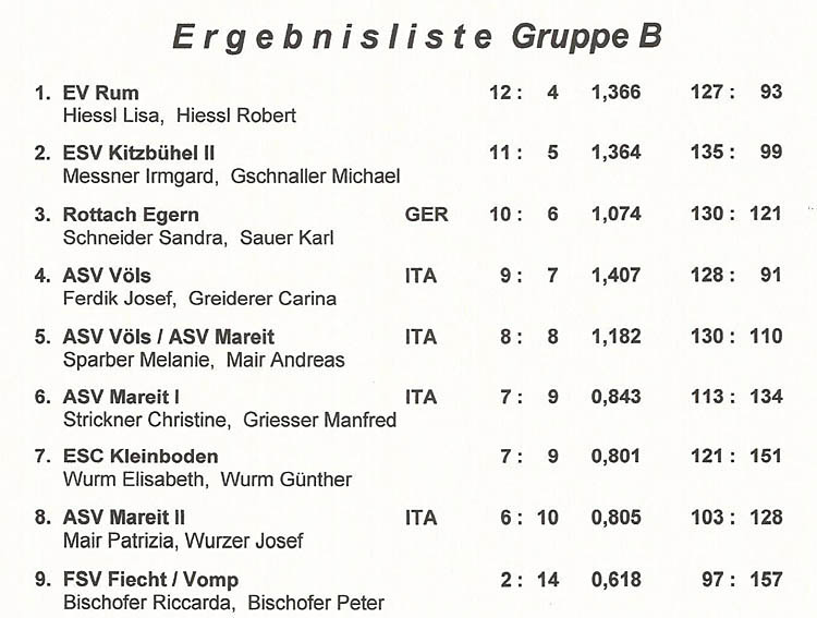 < Ergebnisse Herren > < Ergebnisse Damen > < Ergebnisse Senioren > < Ergebnisse Mixed > < Ergebnisse Jugend >
