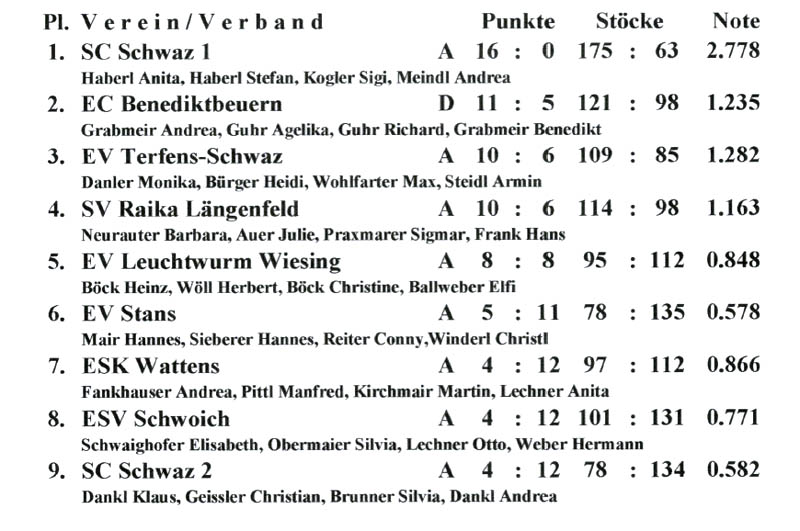 < Ergebnisse Herren > < Ergebnisse Damen > < Ergebnisse Senioren > < Ergebnisse Mixed > < Ergebnisse Jugend >
